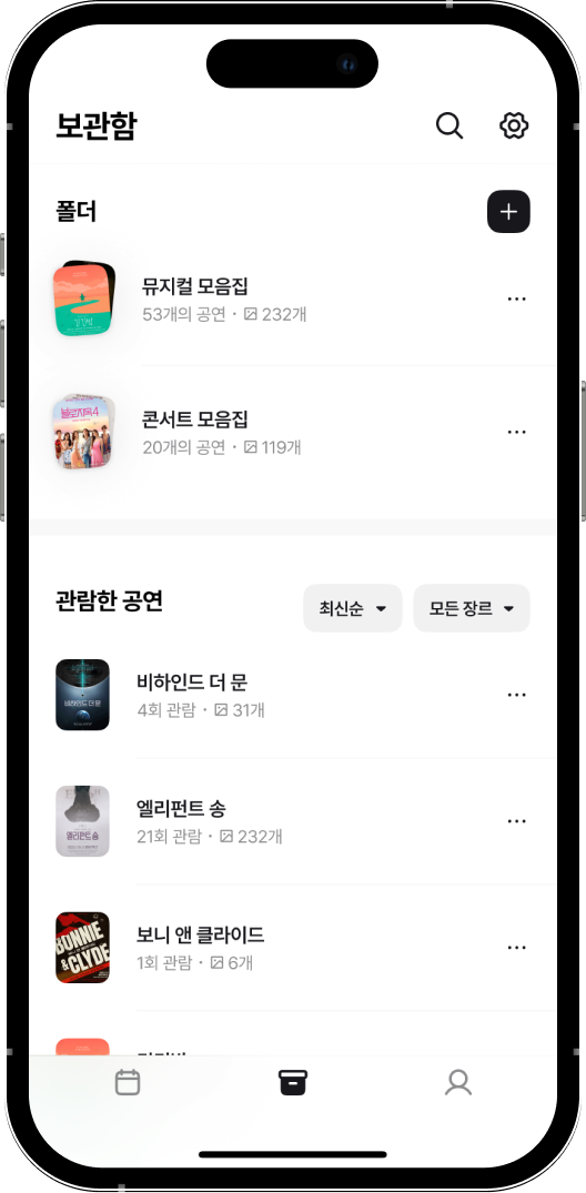 관극 일정을 편리하게 관리하고, 소중한 기록을 안전하게 모을 수 있도록