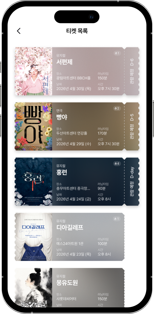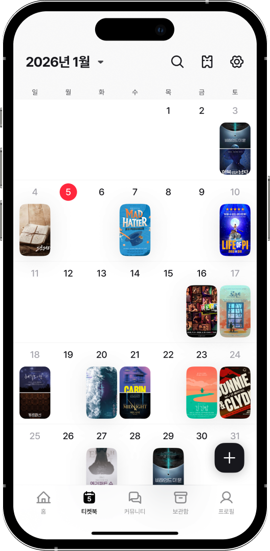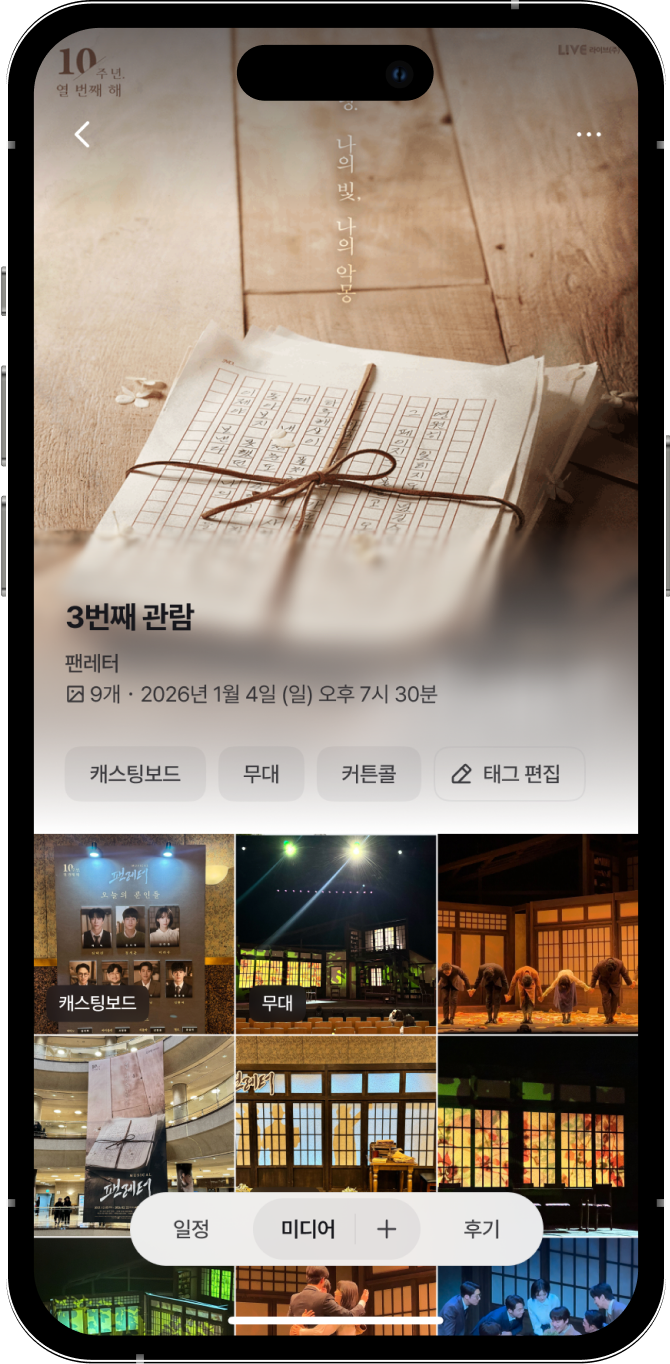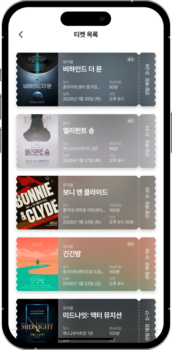 관극 일정을 쉽게 관리하고소중한 기록을 안전하게 모을 수 있도록반짝이는 순간들에 함께하는 다정한 친구가 될게요.