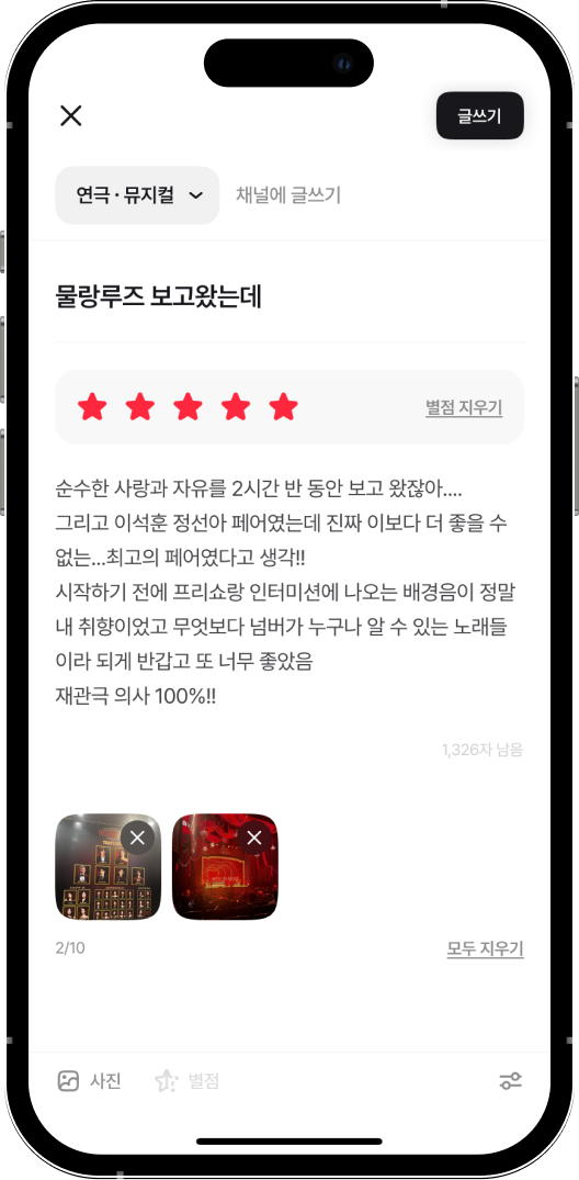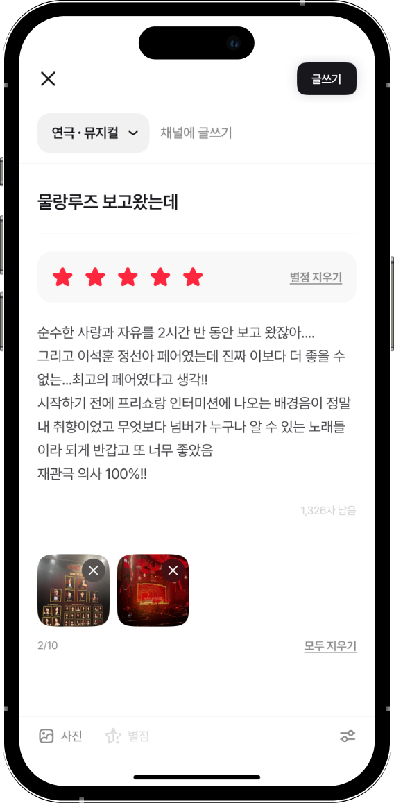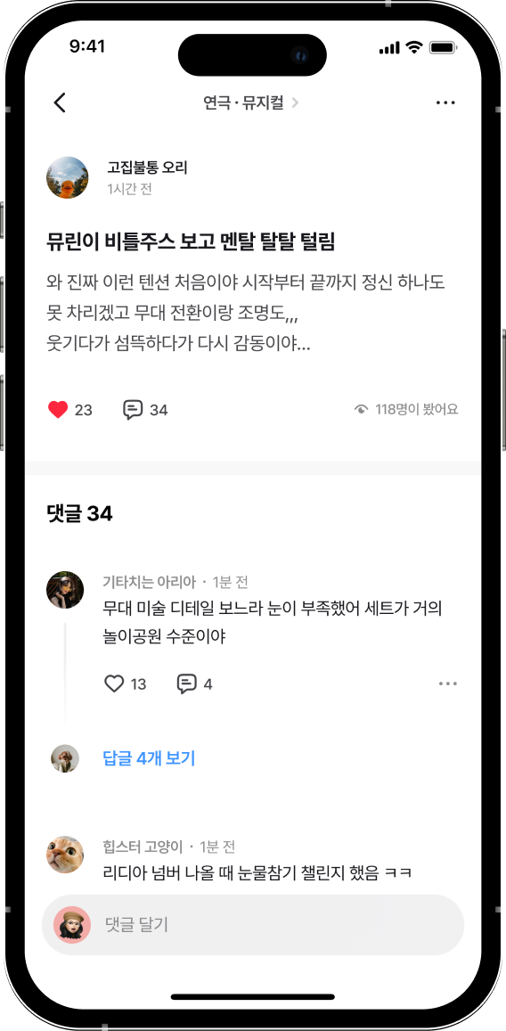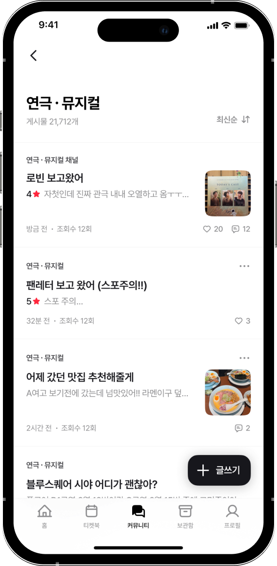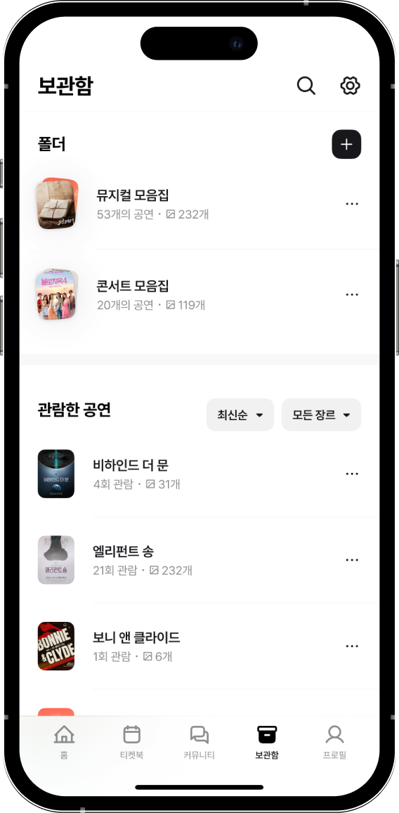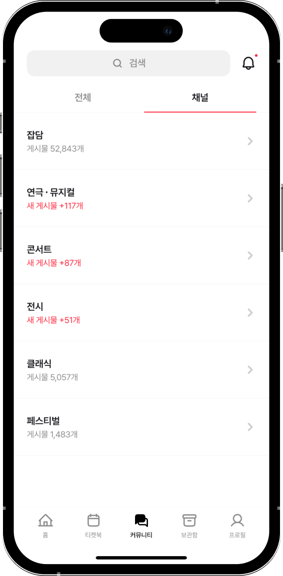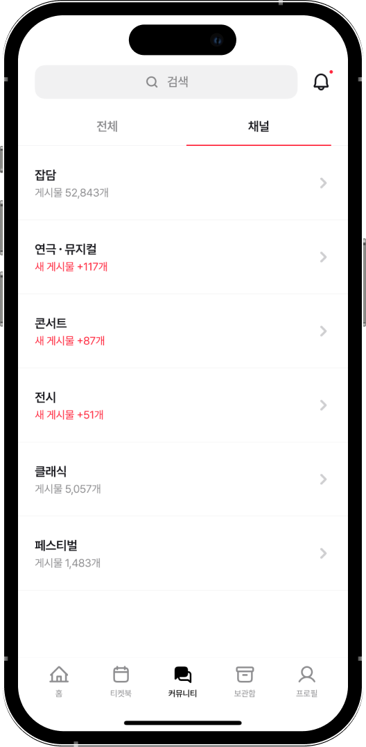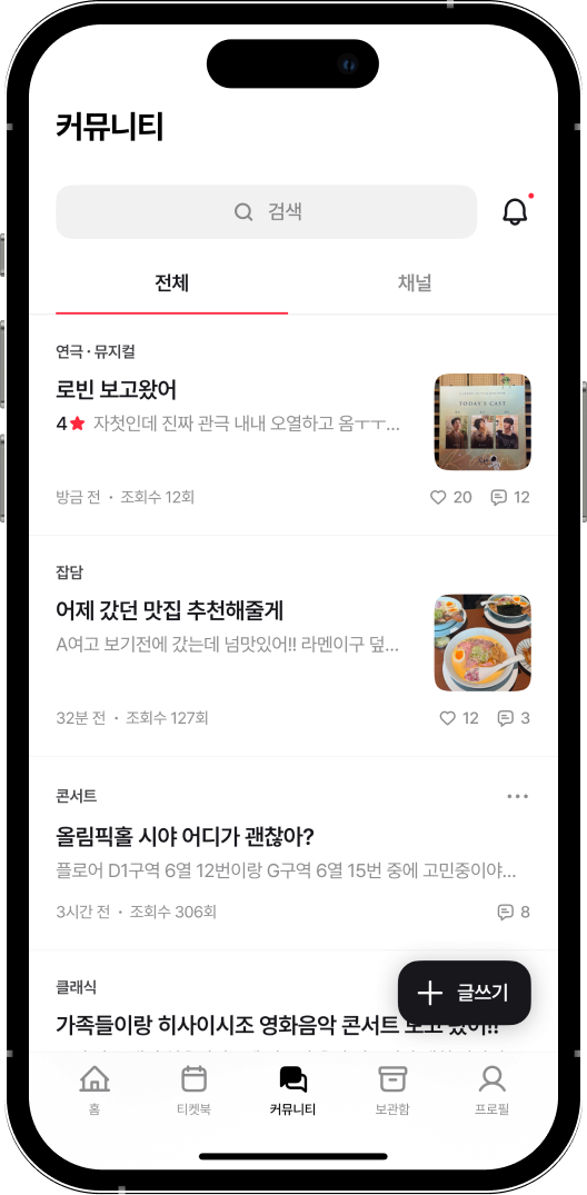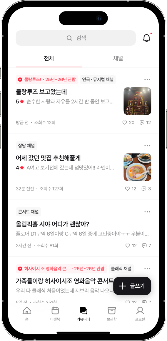 관심 있는 장르 채널에서 비슷한 취향을 가진 사람들과 소통할 수 있어요.공연의 기억이 더 선명해질 거예요
