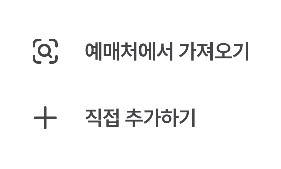 시티가 예매 정보를 불러오는 동안 설레는 관극의 순간에만 집중해요.흩어져 있던 내역을 직접 입력하거나, 주요 예매처 불러오기로