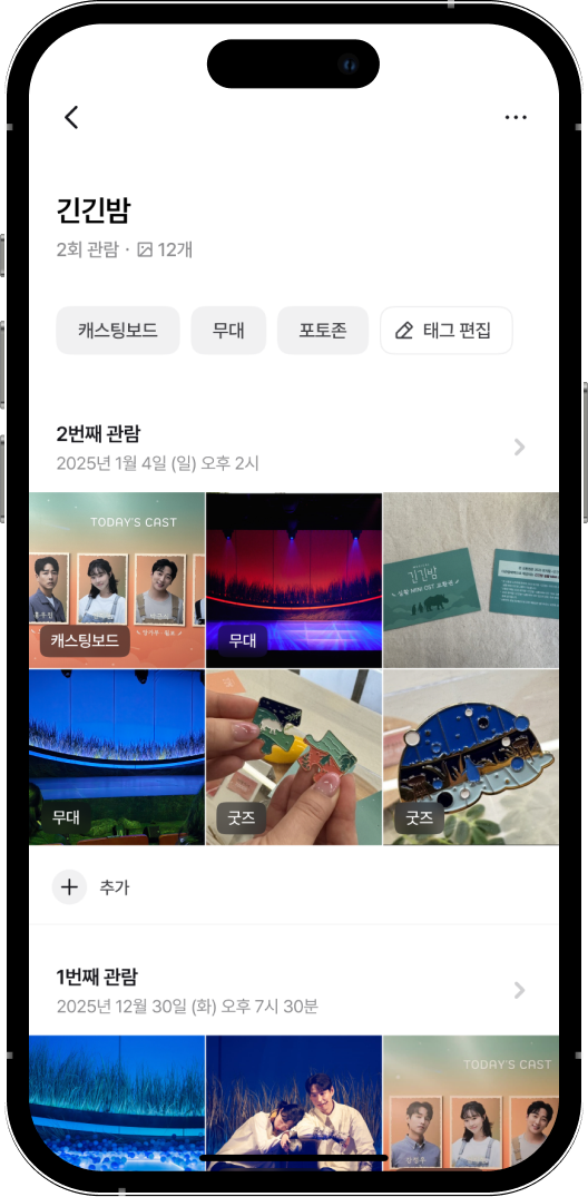 저장한 모든 사진은 공연 회차별로 정리되어,