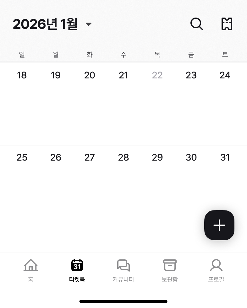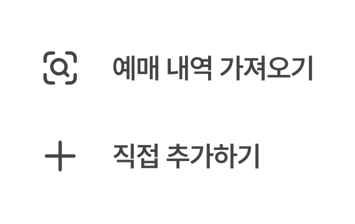 ‘티켓북’ 메뉴에서 ‘관극 일정 추가' 버튼을 눌러서 관극 일정을추가할 수 있어요